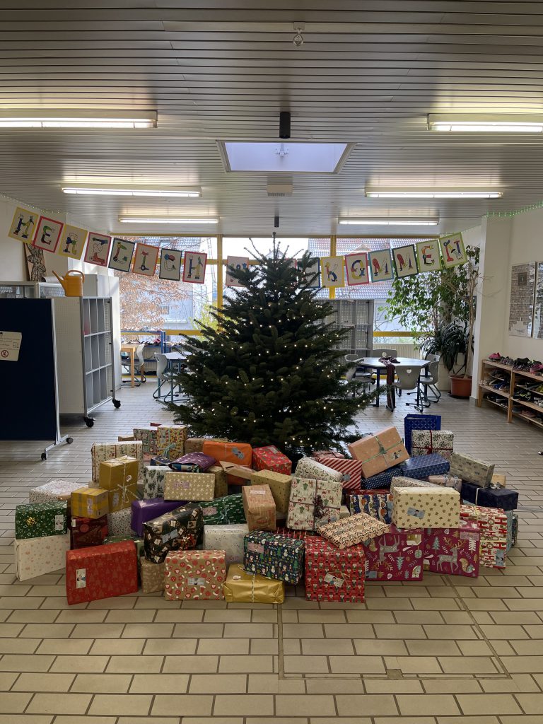 So manch Kinderaugen leuchteten heute, als sich unter unserem Weihnachtsbaum in der Vorhalle die Geschenke stapelten… Stolze 126 Päckchen konnte die Saalburgschule heute der Stiftung „Kinderzukunft“ überreichen! Wir bedanken uns vom Herzen bei all unseren Familien, die sich an der schönen Aktion beteiligt haben!